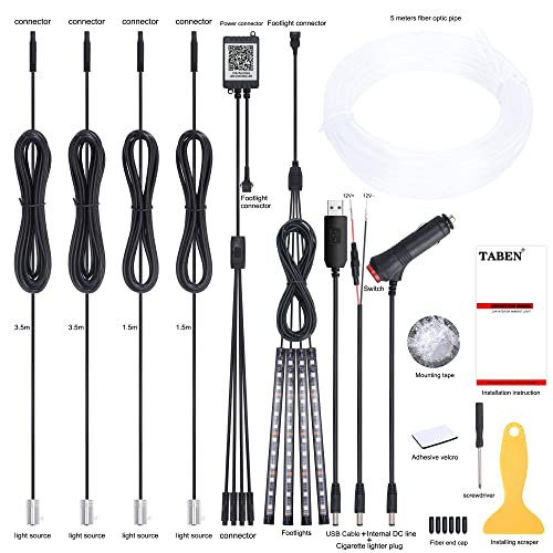 TABEN Luce Ambientale per Auto Controllo App Lampada a Luce Decorativa Fai da Te Refit Tubo in Fibra Ottica Flessibile 64 Colori Illuminazione Interna vano Piedi Luce d'atmosfera 1W DC 12V 5m