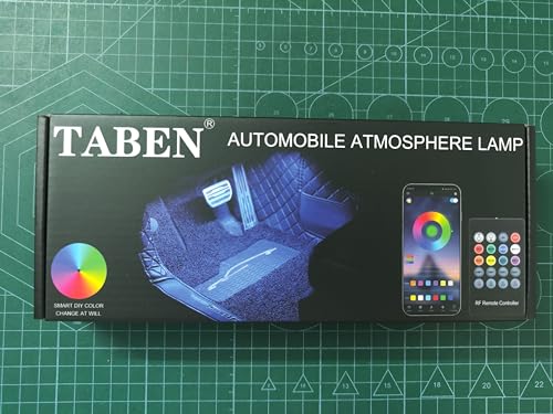 TABEN Kit luce ambiente RGB per auto interna, 4 pezzi 48 LED Controller APP, sincronizzazione con musica suono Funzione di memoria attiva Illuminazione auto con caricabatteria per auto DC 12V-24V 1W
