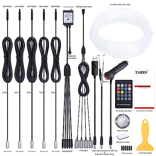 TABEN Kit luci Atmosfera per Auto Sincronizzazione Musicale Multicolore 16 Milioni Colori 6 Metri Kit Illuminazione Ambientale vano Piedi USB in Fibra Ottica, Telecomando RF Controllo