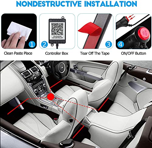 【Kit di illuminazione ambientale vano piedi per auto USB】 Questa striscia luminosa per auto vanta 4 linee che collegano 4 strisce luminose. È più facile impostare e nascondere le linee. Tieni sempre la tua auto pulita, in ordine. Viene fornito con 2 cavi di collegamento da 190 cm (6,23 piedi) e 2 cavi da 150 cm (4,92 piedi) e una striscia da 22,5 cm (0,74 piedi). Non c'è bisogno di modificare il cablaggio, fornire connessioni di alimentazione in 3 metodi: accendisigari, linea CC e cavo USB.