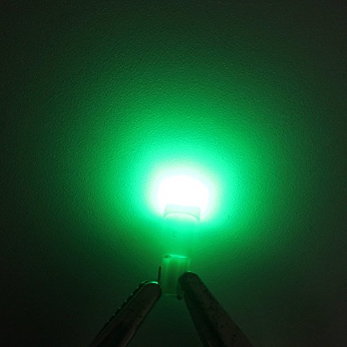 Green COB SMD, ogni lampadina LED ha 1 grande SMD di alta qualità in totale. Circuito integrato per ingresso di tensione DC 12V. Diametro base: 5 mm e lunghezza totale: 19 mm. Tempo di risposta on/off più veloce. Colore vivido, nessuna radiazione UV o IR.