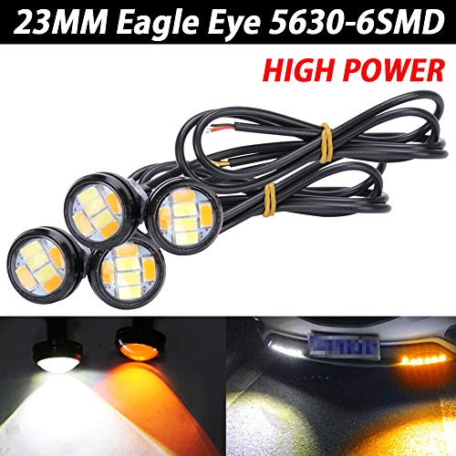 TABEN - 2 serie di luci LED Eagle Eye 5630 6SMD da 9 W, 23 mm, due colori (bianco e ambra), luci Switchback DRL (luci di marcia diurna), fendinebbia, per auto e moto, 12 V