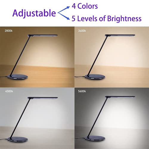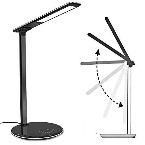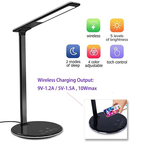Table lamp and wireless charger, LED desk lamp USB port light control wireless charger touch 4 modes 5 levels adjustable brightness reading rechargeable black