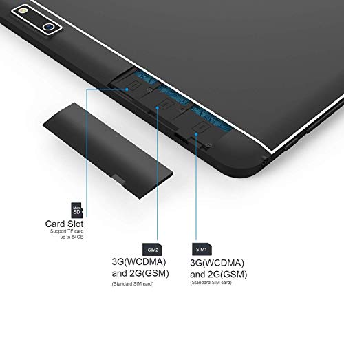 10.1 Tablet Android 7.0 Nougat, Slot per schede Dual SIM sbloccate 3G, Processore Octa-Core, DDR3 da 4 GB, Archiviazione da 64 GB (Nero)