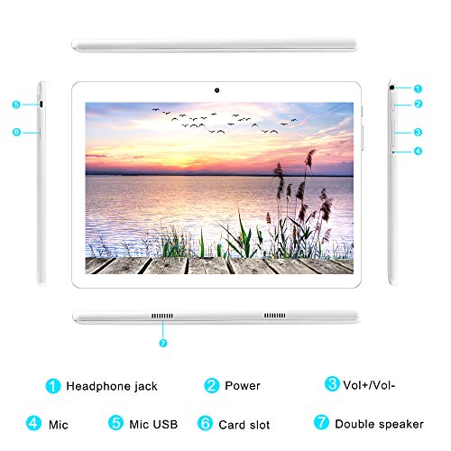 Tablet Android 9.0 10 pollici con 4 GB di memoria ROM da 64 GB integrata, fotocamera WiFi GPS, due slot per schede SIM per sbloccare il tablet del telefono 3G (bianco)