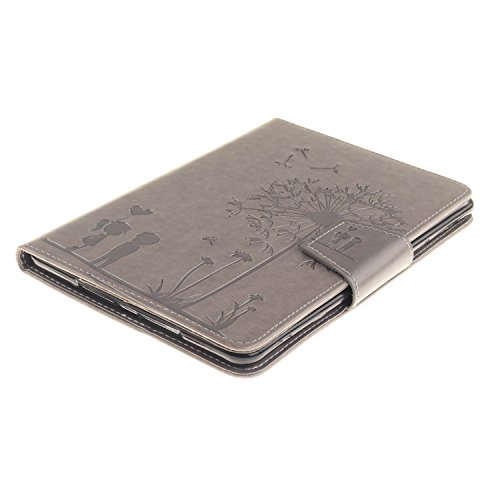 Tablet Cassa per Apple iPad Mini 1/2/3 7.9", CLTPY Puro Vintage Belle Tarassaco Coppie Rilievo Embossed Serie Modello Portatile Back Cover, Completa Semplice Kickstand Resistenza Disegno Protettivo Case con la Funzione del Basamento e Supporto di Carta per iPad Mini1,iPad Mini2,iPad Mini3 + 1x Stilo - Grigio