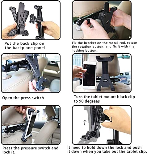 Installazione rapida: questo supporto per poggiatesta auto per tablet senza attrezzi, basta ruotare la manopola rotante per attaccare o staccare rapidamente il supporto ai montanti per tablet da auto
