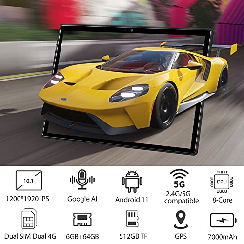 Tablet 10 Pollici Android 11 Octa Core 6GB RAM 64GB/512GB ROM 1920*1200 IPS FHD Tablet PC 4G LTE+5G WiFi 2Ghz Tablet in Offerta 7000mAh Dual SIM 5+8MP Type-C GPS Tablet Android con Tastiera,Grigio