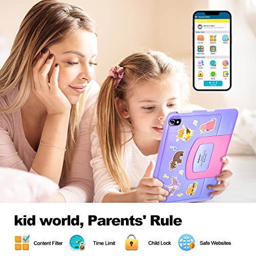 Tablet 10 Pollici Android 12 GMS, Tablet Bambini 4GB RAM 64GB/TF 128GB ROM, Kid Tablet offerte Controllo Parentale, Giochi Educativi, Doppia Fotocamera, Tablet WiFi in Offerta Custodia(viola)