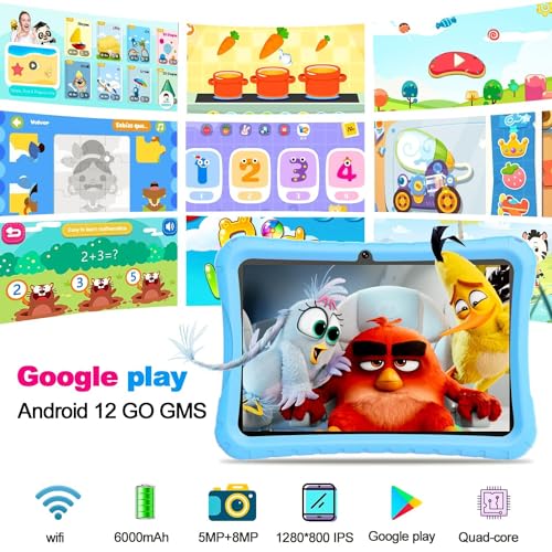 Tablet 10 Pollici Android 12 Go,Tablet Bambini 4GB+64GB/TF128GB,6000mAh 1.5Ghz Kid Tablet in Offerta Doppia Fotocamera,WiFi Bluetooth,Netflix,YouTube,iWawa Giochi Educativi,Parental Control(Blu)