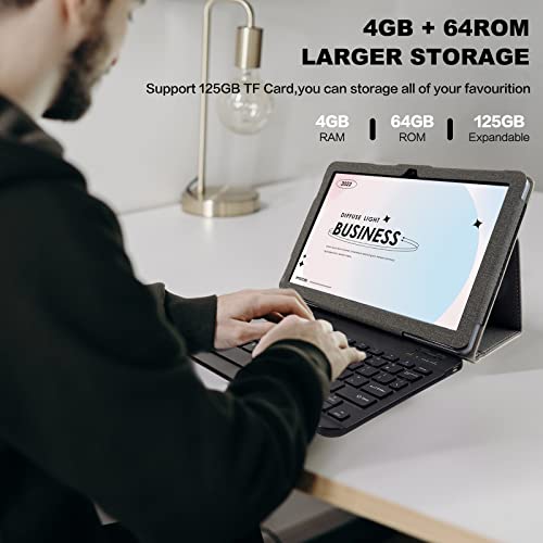 Tablet 10 Pollici Android 12 5G + 2.4G WiFi, 4 GB RAM 64 GB ROM Processore 1.6 Ghz Bluetooth 5.0, 13 MP+5 MP, 8000 mAh, SD/TF 4-256 GB,Con manicotto protettivo e tastiera- Grigio