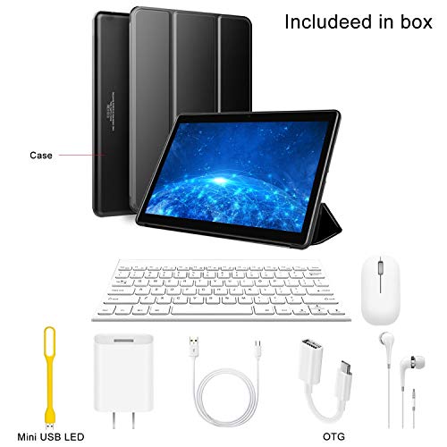[Accessori 9 pezzi] 1*Luce LED USB,la luce LED USB è collegata al tablet tramite il cavo OTG per fornire l'illuminazione al buio.1*Linea OTG, Il tablet può caricare il telefono attraverso la linea OTG, in modo che il tablet possa essere una fonte di alimentazione mobile. 1*mouse senza fili, 1* tastiera Bluetooth, 1 * Custodia per tablet, lasciare che il tablet diventi un laptop,1 * cuffie,1*cavo USB,1*caricatore,1*Manuale di istruzioni
