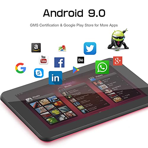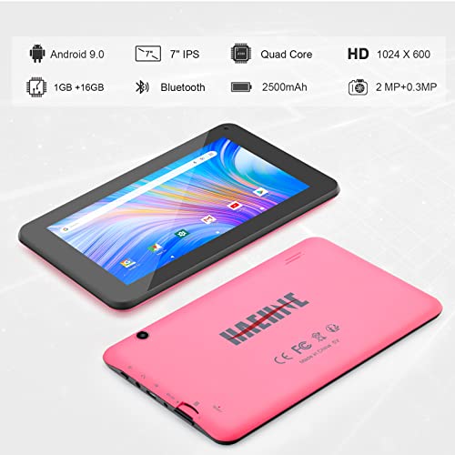 Tablet 7 Pollici - Haehne Android 9 Tablet PC, Quad-Core, RAM 1 GB, Memoria 16 GB, 1024 * 600 HD IPS, Batteria 2800mAh, Doppia Fotocamera/WiFi/Bluetooth, Rosa