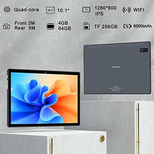 【4GB RAM 64GB/256GB Espandibili Archiviazione】4Go di RAM per tablet ti consentono di eseguire più programmi in background, assicurando che il tuo computer funzioni ad alta velocità. La memoria integrata da 64 GB offre spazio sufficiente per archiviare musica, video e file. Lo slot per schede Micro SD offre fino a 256 GB di memoria espandibile, offrendo possibilità illimitate.