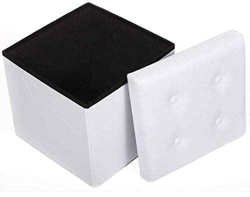 Taburete de almacenamiento Puff Baúl Plegable Cuadrado Taburete de Almacenamiento Tapizado en Esponja con Patas de Madera Maciza con (Blanco)