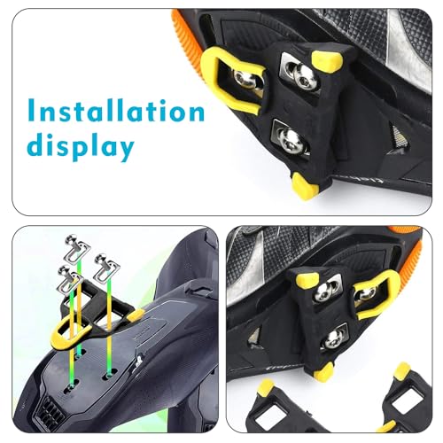Galleggiante di 6 Gradi: SPD Cleats, autobloccanti, design professionale del sistema di galleggiamento a 6 gradi, modalità auto-allineante, che riduce il dolore e l'affaticamento. Non c'è bisogno di preoccuparsi che il PE scivoli