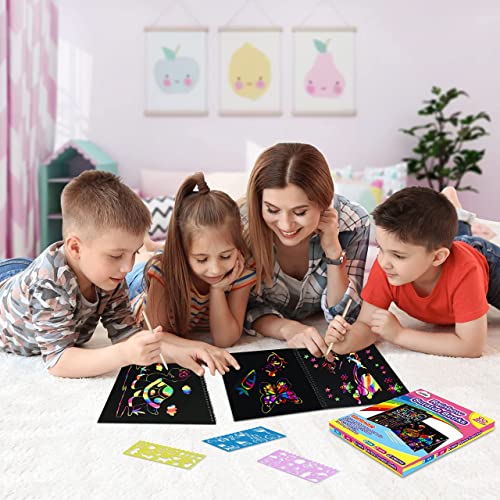 Set di quaderni di Scratch Art di valore: kit di carta da grattare con 2 pacchi di libri (9,5 × 7 pollici) e 4 stencil da disegno (colore casuale) e 4 stilo, è il miglior regalo per la tua famiglia e i tuoi amici di 3+ ragazze, aumenta i bambini Halloween Natale Giochi per feste di compleanno