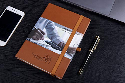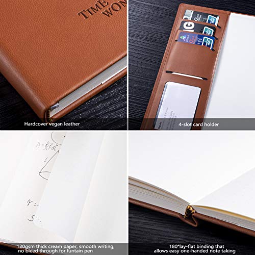 Taccuino Puntinato A5 Bullet Journal con Copertina Rigida in Pelle Vegana, Quaderno Punteggiato con Carta Avorio da 120 gsm, 155 Pagine Numerate e Angolo Perforato, Marrone