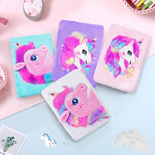 【Motivo unicorno carino】: la copertina di questo taccuino è stampata con un motivo unicorno affascinante e accattivante. Diario di peluche, effetto peloso, con 4 colori diversi tra cui scegliere, un taccuino magico, che può portare molto divertimento ai bambini. Ogni colore del taccuino è abbinato a un adorabile unicorno e una morbida penna a sfera in peluche.