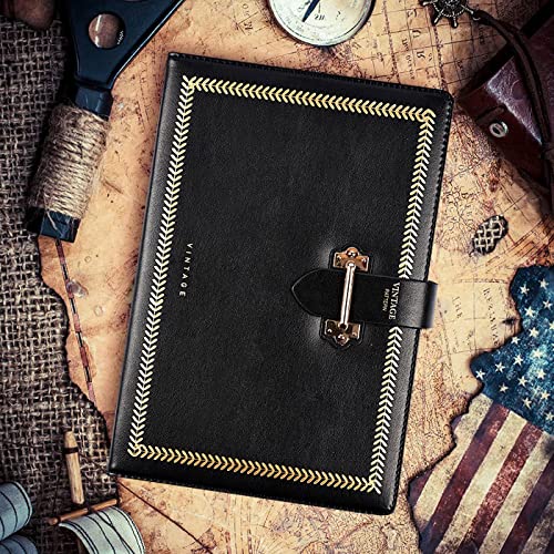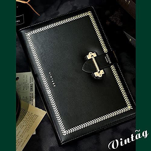 Taccuino Vintage in Pelle Quaderno, Taccuino A5 in Pelle, 256 pagine di spessore, con portapenne, Ideale per Scrivere, Disegnare, fare Schizzi, Bozze, Regalo per Uomini o Donne, Viaggiatori (Nero)