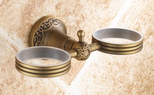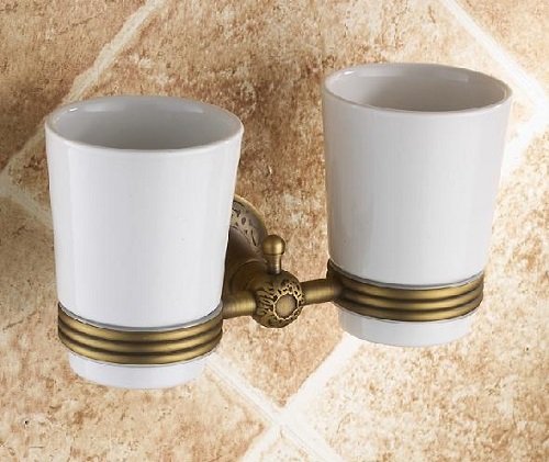 Taccy doppio bicchiere/portaspazzolino tazza in vetro e ottone, con bronzo antico # AS05