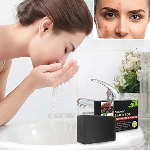 Tacery 2 PCS Detergente Viso con Sapone Nero - Sapone Nero al Burro di Cacao comedone con vitamina E - Sapone per la Pulizia Profonda della Pelle per Problemi della Pelle Macchie Scure,