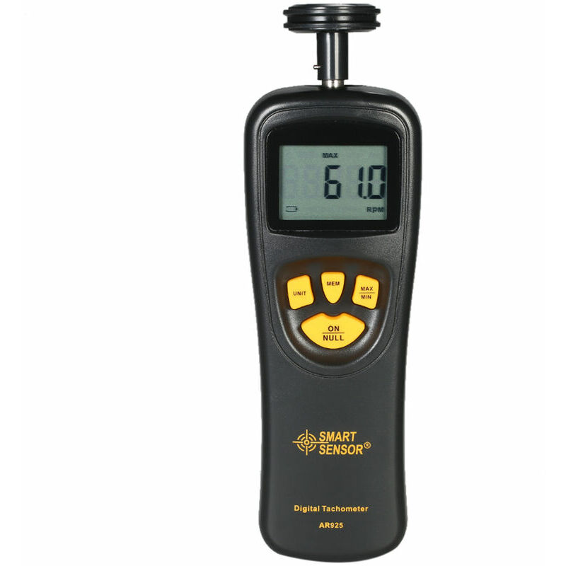 Questo tachimetro a contatto digitale viene utilizzato per rilevare la velocità di rotazione, la velocità lineare o la frequenza del motore. Può essere ampiamente utilizzato in motori, ventilatori, lavatrici, automobili, aeromobili e altri settori. risoluzione. Display LCD per una chiara indicazione. Misurazione del valore Max./Min./ULTIMO. Dotato del sensore di velocità del canale lineare, è facile misurare la velocità lineare di filo, cavo, eccetera. . Accessori convertibili per diverse misure. Include indicazione di batteria scarica e funzione di spegnimento automatico. Viene fornito con custodia protettiva per riporlo facilmente. Specifiche: Marca: SMART SENSOR Colore: nero + giallo Materiale: ABS Display: LCD retroilluminato *Intervallo di misurazione: 0,5~19999RPM 0,05~ 1999,9 m/min 0,2~6560 piedi/min *Risoluzione: 0,1 RPM (0,5~999,9 RPM) / 1 RPM (oltre 1000 RPM) 0,01 m/min (0,05~99,9 m/min) / 0,1 m/min (oltre 100 m/min) 0,1 piedi/min (0,1~999,9 piedi/min) / 1 piede/min (oltre