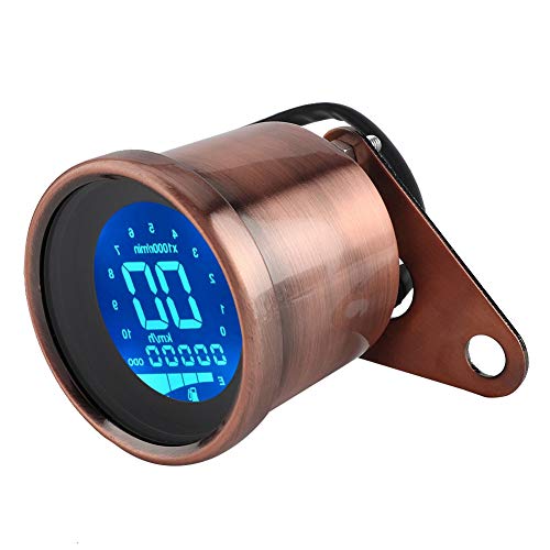 Tachimetro moto universale - Tachimetro retroilluminato LCD moto 12V Contachilometri contagiri (rame rosso)