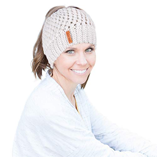 Tacobear Berretti in Maglia Donne Autunno Inverno Caldo Cappelli Donne con Buco Beanie Cappellini Berretto da Sci per Coda di Cavallo Ponytail (Beige)