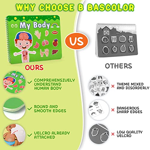 Libri occupati a tema del corpo: i giocattoli occupati per l'apprendimento del libro sono un trattamento a doppio ispessimento, forti e durevoli. Per motivi di sicurezza, lo speciale design anti-taglio è progettato per prevenire piccole lesioni alla mano causate da piccoli biglietti troppo sottili. Non facile da piegare, deformazione e strappare. Super velcro non cadrà.