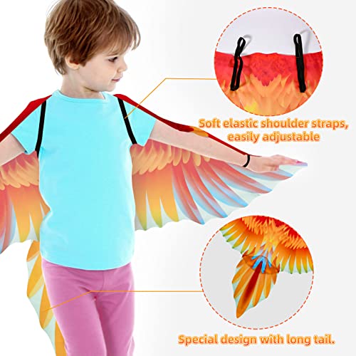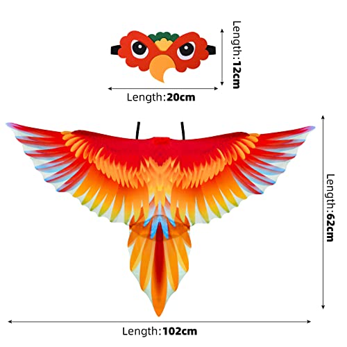 Materiale di Alta Qualità - Costume da ali di uccello per bambini, realizzato in 100% chiffon, traspirante e confortevole con colori vivaci. La maschera per gli occhi è realizzata al 100% in feltro di alta qualità con lavorazione fine e tridimensionale. Gli spallacci morbidi ed elastici lo rendono più facile e comodo da usare per i bambini. Facile da muovere, giocare e ballare per i bambini.