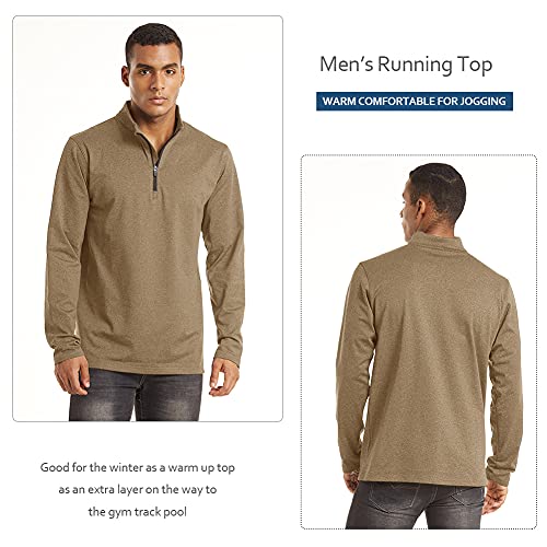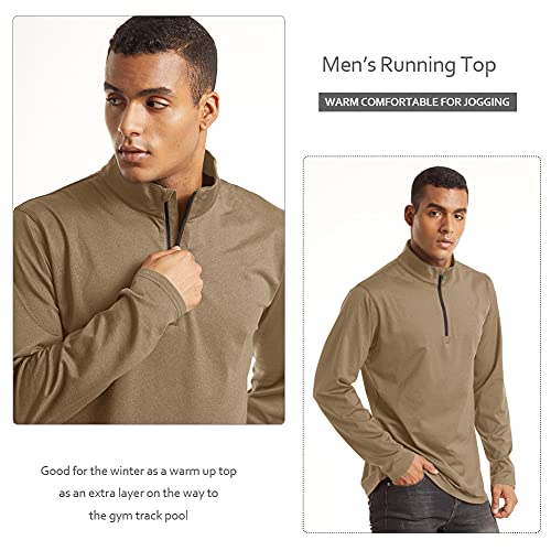 TACVASEN Maglia Uomo Manica Lunga Sport Running Shirt 1/2 Zip Training Top Palestra Jogging Camicia Quick Dry con Collo in Piedi, Cachi, XXL