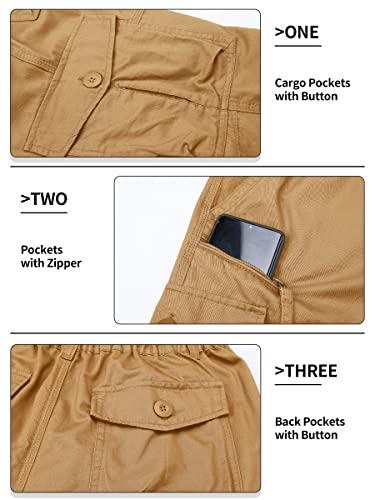 TACVASEN Pantaloncini Cargo in 100% Cotone 3/4 Casual con Molte Tasche per Uomo, Cachi