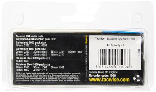 Tacwise 1066 3.1/90mm Chiodi a Bobina Lucidi (Appuntiti), Argento, 25 mm, Set di 1000 Pezzi