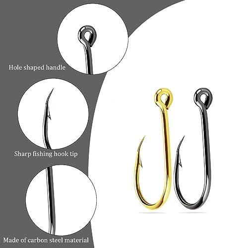 Totale 200 pezzi in 10 misure I ganci ad occhiello sono confezionati in griglie separate, comode da distinguere, conservare e utilizzare. La scatola di immagazzinaggio è piccola e facile da trasportare quando vai a pescare,Set nero da 100 con fori (10 ciascuno delle taglie 3-12) + Set oro da 100 con fori (10 ciascuno delle taglie 3-12).