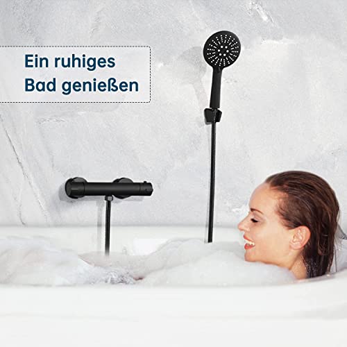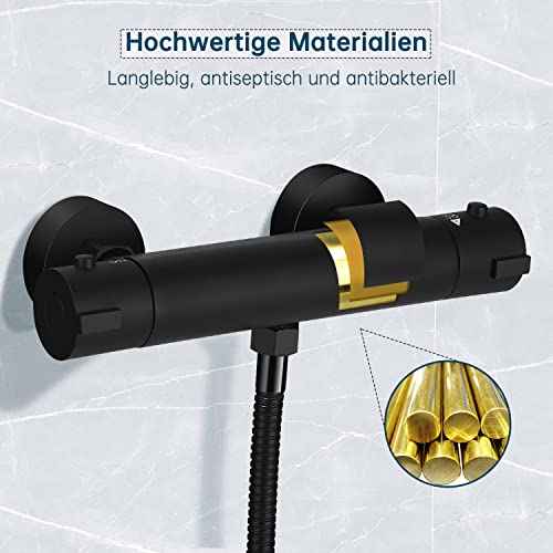 Materiale di alta qualità: il rubinetto per doccia con termostato nero è realizzato in ottone con rivestimento nero opaco. Filtrazione multistrato, basso consumo di acqua, antiscivolo, anti-impronte, antibatterico e resistente all'abrasione