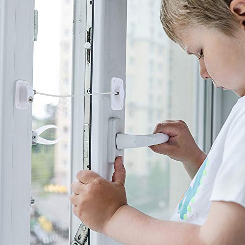 TAECOOOL - Serratura per finestra in ABS, per serratura, per bambini, con chiave a vite, colore: bianco (4 pezzi)