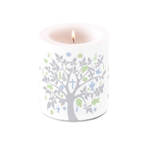 Tafeldeko.de Candela da Tavolo per Comunione, cresima, Albero in Argento, 90 mm