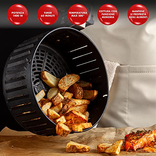 EFFICIENTE E RAPIDA: L'ampia capacità di contenimento permette di cucinare contemporaneamente pietanze per più di 6 persone. Rispetto alla frittura tradizionale il tempo di cottura è più rapido, non si generano vapori o fumi, non rilascia odori e consente di risparmiare energia.