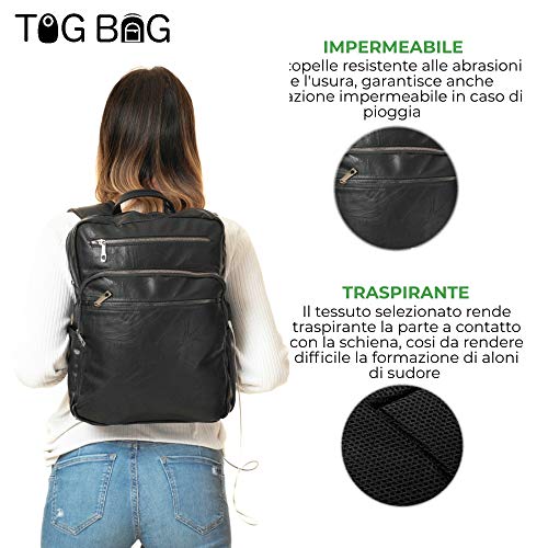 TAGBAG Zaino Z202801 Uomo Donna Moda Unisex Ecopelle Multiuso Impermeabile Gps Integrato Bluetooh Ufficio Viaggio Tempo Libero Porta Usb Powerbank Smartphone Notebook Mac (Z202801, Nero)