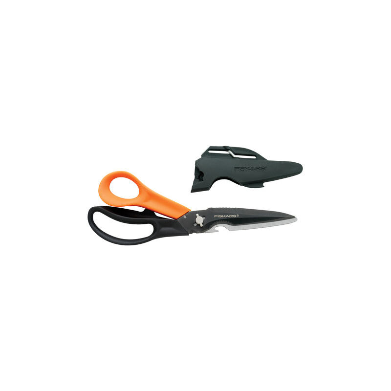 Dati tecnici: Lunghezza: 230 mm Larghezza: 80 mm Peso: 131 gFISKARS Cuts+More Multiutensile Forbici multifunzionaliIdeale per tagliare vari materiali, ad es. fili, cavi, borse o tessutoProgettato per destrimaniAcciaio multifunzione completamente temprato e rettificato con precisione Le lame rimangono affilate più a lungo. Le impugnature dal design ergonomico sono dotate di un tagliafili e cavi, un punteruolo per il materiale da perforazione e un foro apribottiglie per tagliare i fili. Apri bottiglia. Punteruolo per materiale da perforazione. *Le foto sono solo a scopo illustrativo.