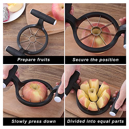 Materiale di Alta Qualità: La taglia mele per mele è realizzata in acciaio inossidabile 430 di alta qualità e il doppio manico è realizzato in materiale ABS addensato di alta qualità, che soddisfa lo standard di igiene alimentare LFGB dell'UE, con buona resistenza alla ruggine e durata.