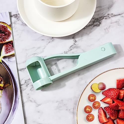 Design ponderato: lo stantuffo morbido, anti-slittamento e il riposo a dito curvo sono comodi e facili da usare, facili da tenere e operazione, uso con una sola mano, basta premere leggermente con il pollice per ottenere quattro piccoli pezzi di frutta, automaticamente dopo aver tagliato ilLa frutta si restringe in posizione.