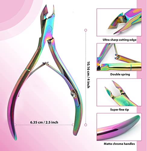 Taglia cuticole professionale a 1/2 ganasce Tronchese per cuticole Piedi per manicure in acciaio inossidabile Mani Cuticole per unghie dei piedi incarnite Forbici per cuticole (Arcobaleno)