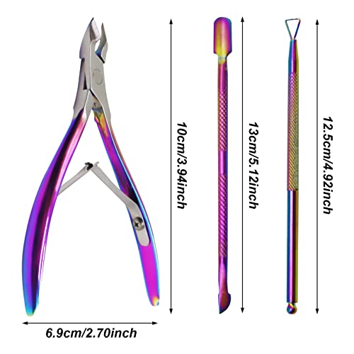 Materiale di alta qualità: il kit di rimozione delle cuticole è realizzato in acciaio inossidabile, l'acciaio inossidabile spazzolato taglia la cuticola con precisione ed è facile da pulire. Il processo di galvanica superficiale è colorato, bello e generoso.