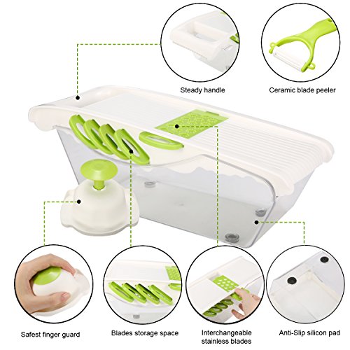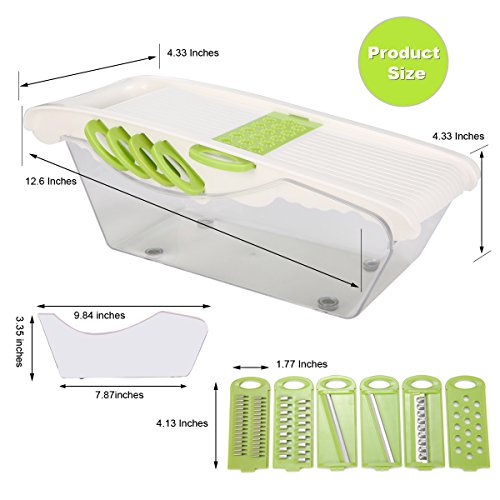 Taglia Verdure Mandolina affetta verdure Slicer Spiralizzatore Verdura Godmorn 6+1 affetta Verdura Affettatrice alimentare Frutta e formaggio con 6 lame in acciaio inossidabile intercambiabile verde