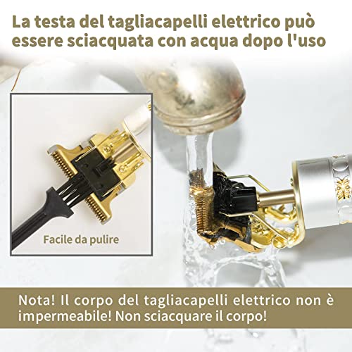 ✂️ 【Kit di Tagliacapelli Professionale Multifunzione per Uomo】: Il set di hair trimmer uomo impermeabile include: 1 tagliacapelli, 4 pettine limite (1.5/2/3/4 mm), 1 spazzolino di pulizia, 1 cavo dati e 1 olio lubrificante. Questa macchinetta da barbiere non può solo tagliare i capelli, cambiare l'acconciatura, ma anche radere la barba e progettare la tua acconciatura preferita. Anche molto adatto per l'uso domestico. Aspetto retrò squisito, sia elegante che pratico.