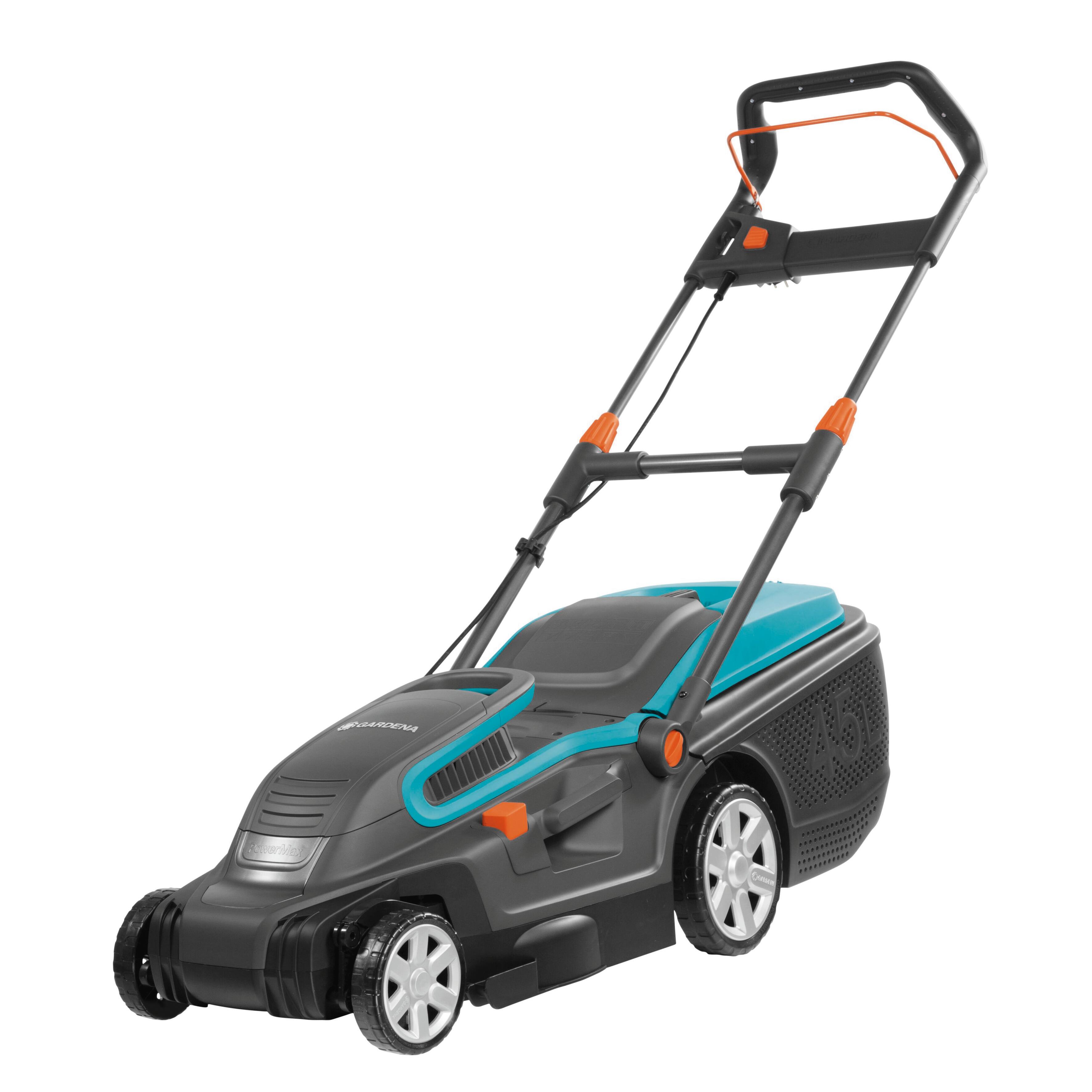 A spinta, POWERMAX 1600W, altezza di taglio da 20 a 60 mm, superficie di taglio da 200 fino a 500 m². Rasaerba adatto a superfici da 200 fino a 500 m². Ideale per il taglio di erba rustica e rovi anche in pendenza. Il telaio in ABS resiste agli urti