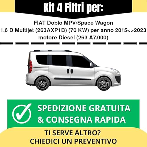 Kit Tagliando 4 Filtri per FIAT Doblo MPV/Space Wagon 1.6 D Multijet 70 kw anno 20152023
