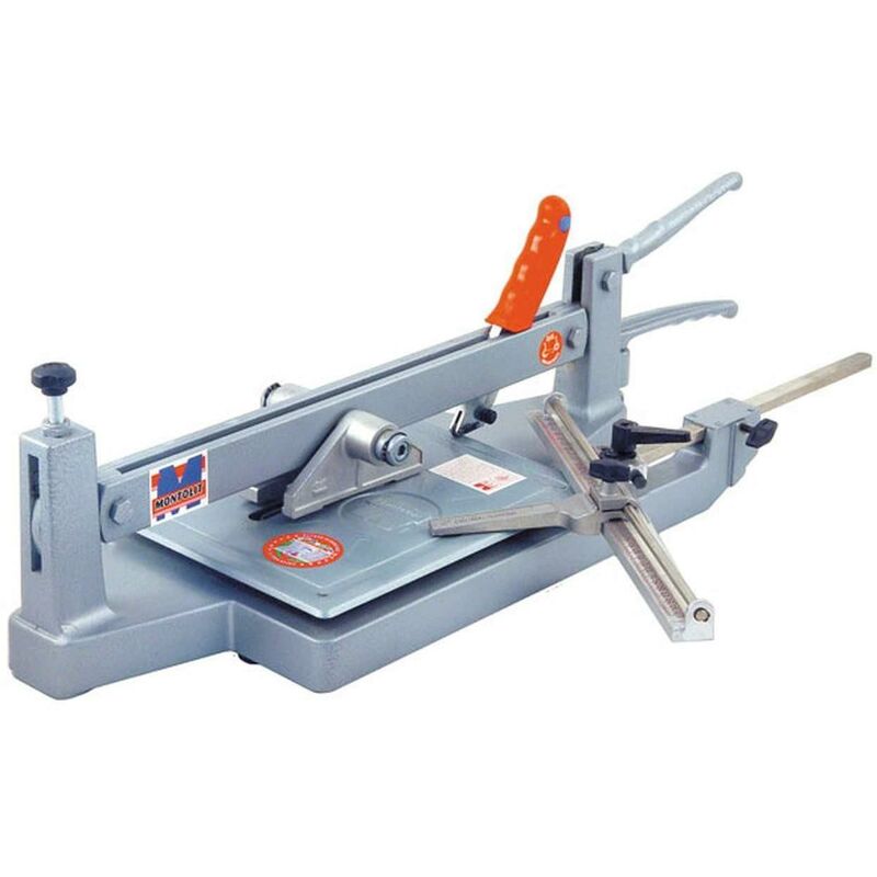 TAGLIAPIASTRELLE MONTOLIT MASTERMONTOLIT 46 50 CM Tagliapiastrelle manuale professionale perfetta per lo spacco di piastrelle di alto spessore, piastrelle estremamente tenaci e con una superficie smaltata molto dura. Massimo spessore di taglio 2,5 cm - massima lunghezza di taglio 92 cm (a seconda del modello). Grazie ad uno speciali sistema di spacco (tutta lunghezza) ed alla possibilità di bloccare la piastrella e di ripetere l'incisione più volte, questa tagliapiastrella si proone come soluzione tecnica anche per le piastrelle più difficili. Taglia tutti i tipi di piastrelle attualmente sul mercato, siano esse in ceramica smaltata, gres, monocottura, cotto o simili. Utilizzo: La piastrella viene fissata sul piano grazie al caratteristico sistema di ammorsamento azionato dalla leva ad eccentrico, la piastrella resta ben ferma sul piano molleggiato così da poter ripetere, eventualmente, una doppia incisione;